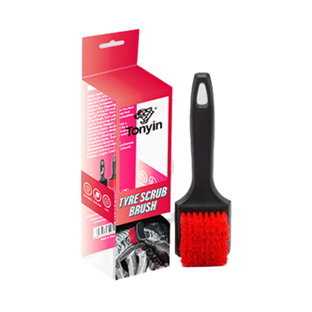 De Bandenborstel biedt de ultieme oplossing voor een grondige bandenreiniging! Dankzij de compacte afmetingen en kortere haren kunt u vuile banden efficiënter en sneller reinigen. Het ergonomische handvat zorgt voor een stevige grip, zelfs als het nat is, en het 21,2 cm lange handvat maakt het gebruik comfortabel. Met 2,5 cm chemisch resistente haren kunt u gemakkelijk een diepe reiniging van rubberen oppervlakken bereiken. Spray de Alloys Wheel cleaner op de band of op de borstel, schrob het oppervlak en zie hoe het vuil er snel afkomt. Indien nodig, spoelen en herhalen. Spoel de borstel na gebruik schoon en hang hem op voor veilige opslag. De Bandenborstel is onmisbaar voor een grondige reiniging van uw banden!